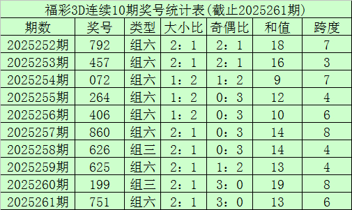 开奖追想:福利彩票3D第25261期奖号开出751。奖号类型为组六,奇偶景观为奇奇奇,大小景观为大大小。